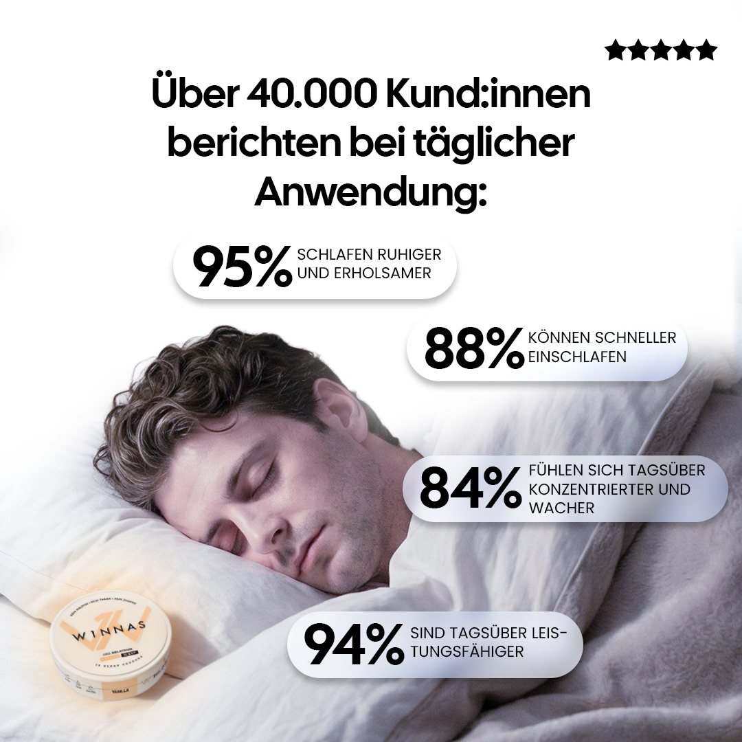Im Gegensatz zu herkömmlichem Snus, der hohe Dosen von Nikotin und Tabak enthält, sind die W1NNAS Pouches mit gesundheitsfördernden, sauberen Inhaltsstoffen formuliert, die die Leistung ohne die damit verbundenen Risiken unterstützen. Sie bieten eine gesundheitsbewusste Alternative, die keine Kompromisse bei der Wirksamkeit eingeht.